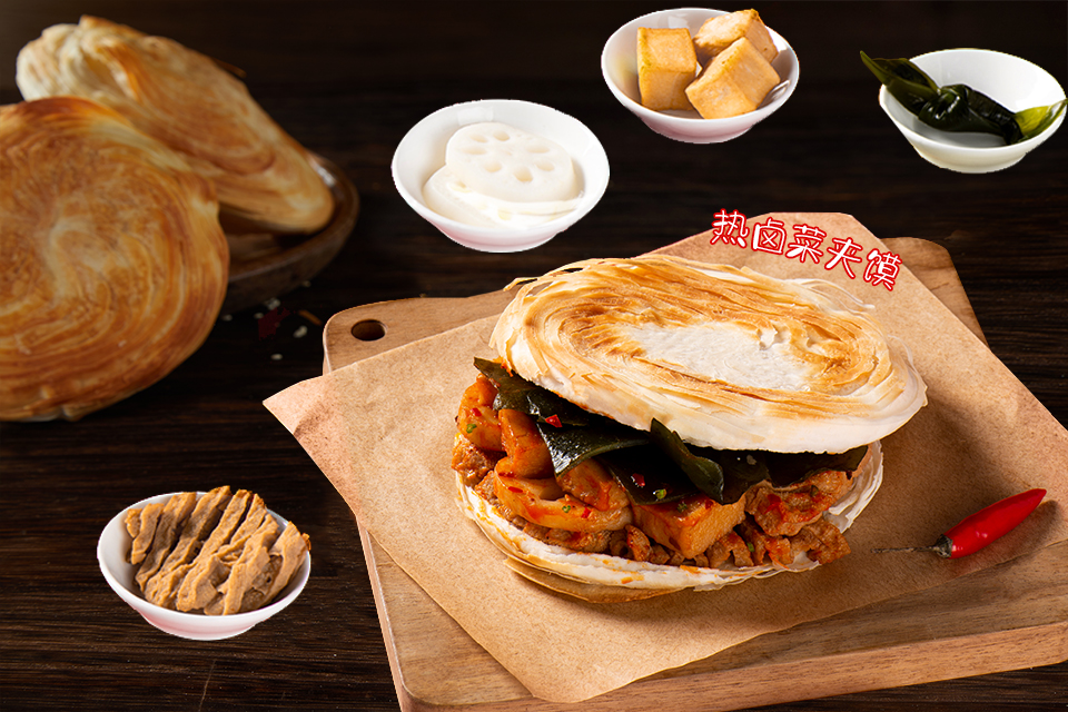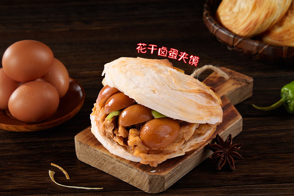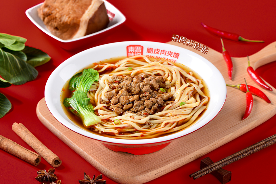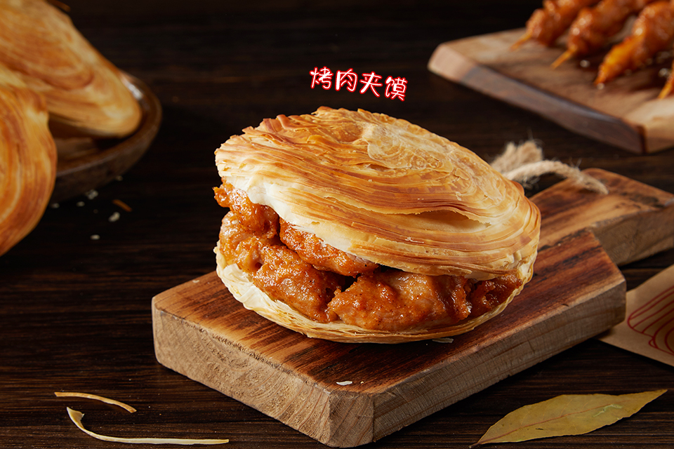 予觀夫天下面食,盡在秦晉。韞(yùn )四海之所長,集五湖而傳統。秦之油潑、臊子、酸湯、夾饃;晉也蒸、煮、煎、燜、炸、烤、搟、削、剔、抿、揪、烙。是故,夫肉夾于饃,秦晉味道翹楚也。肉也,正大豕(shǐ)彘(zhì),香嫩飽滿,肥而不膩,瘦而不柴;饃也,秦晉面粉,千遍揉捻,外皮酥脆,內棉軟嫩;湯汁鮮美,萃華工臻,色艷艷兮堂皇,香盈盈兮欲饗(xiǎng ),味脈脈兮無雙。