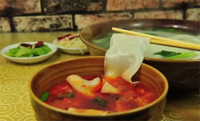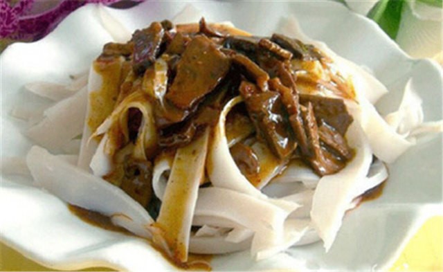 當地制作的面條,其長、寬、厚就像皮帶一樣,煮好后調以佐料,吃起來滑而不膩,別有一番嚼頭。