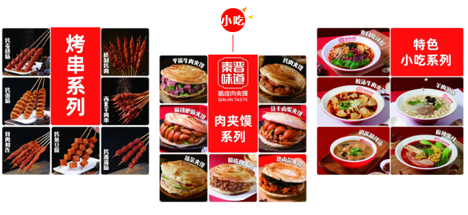 秦晉味道堅持“小吃小喝”下的“簡餐模式”,多樣化門店類型,消費合理、出餐快、操作簡單、利潤高……看似不起眼的一家家“小店”,實則有著強大的盈利能力。吃得飽也能吃得好的組合模式,豐儉由人的產品結構,讓顧客買單更加輕松。