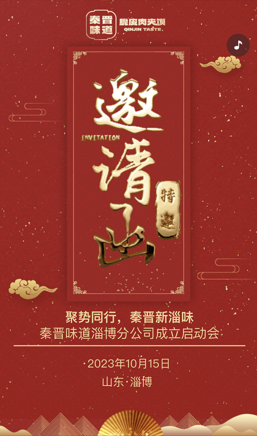 值此秦晉味道10周年之際,淄潤齊魯,博覽中國 。秦晉味道誠摯邀請您出席2023年10月15日下午,由秦晉味道主辦的秦晉味道淄博分公司成立啟動會,共同見證秦晉味道淄博新篇章。
