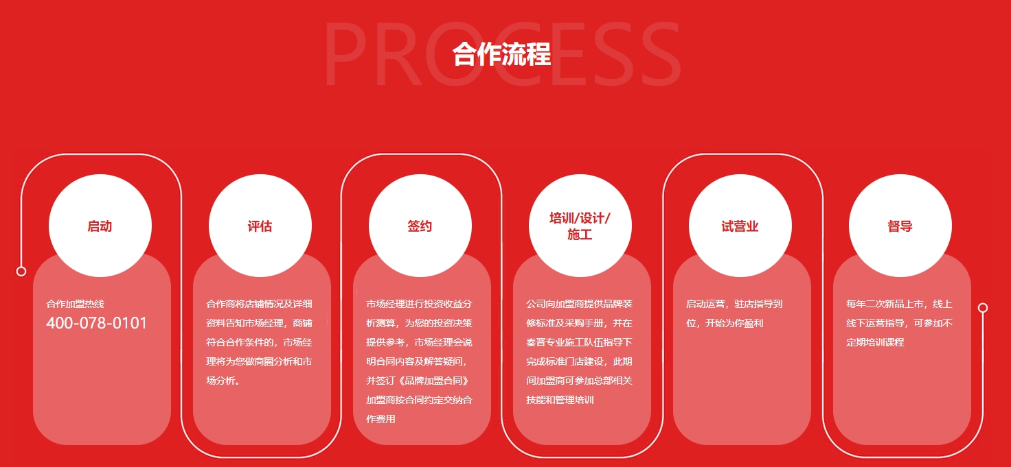5、總部培訓:總部對加盟商進行技術培訓、運營管理培訓和銷售活動策劃培訓。