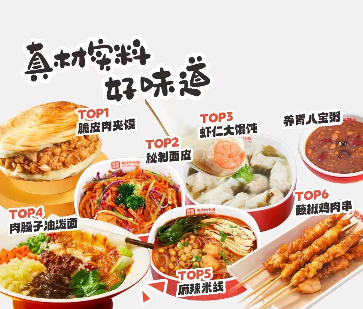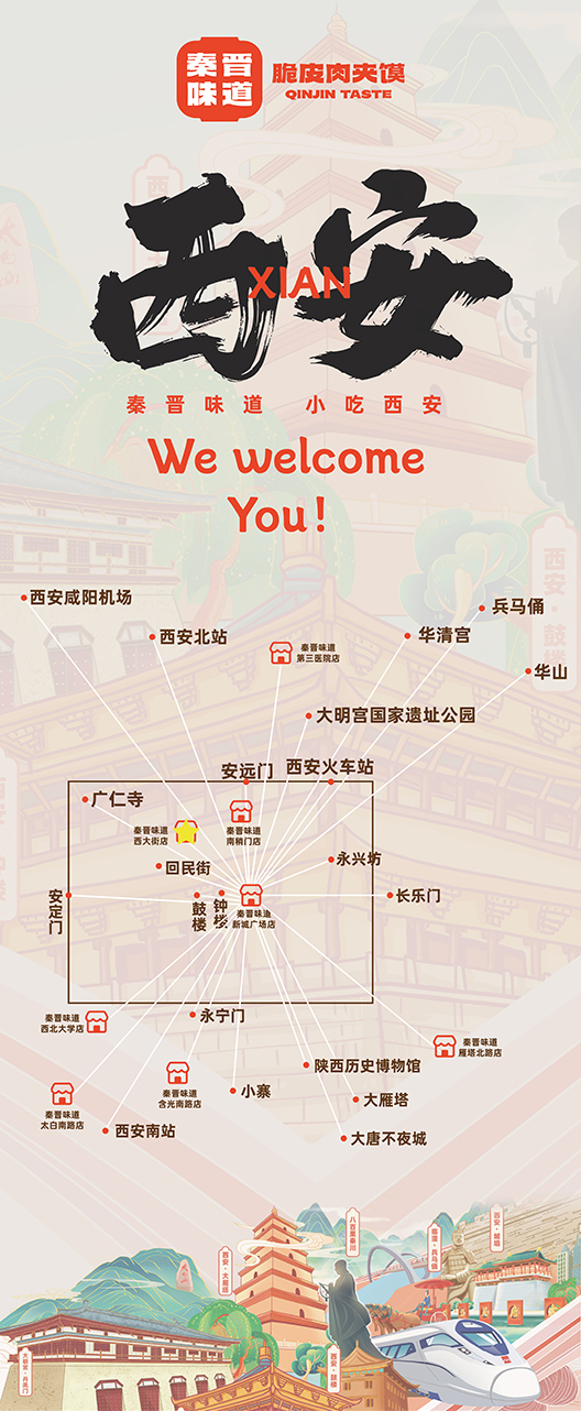 來西安,第一口自然不能錯過秦晉味道肉夾饃。秦晉招牌爆款美食——脆皮肉夾饃,獨具魅力。其臘汁肉精心燉煮,肥瘦相間,肉質酥爛;而饃更是金黃酥脆、層次分明。秦晉味道的脆皮肉夾饃,巧妙地將中式面點千年工藝與西式糕點的酥脆口感相融合,比傳統的百吉餅肉夾饃更為酥脆可口。餅胚現烤現吃,餅酥肉香。此外,還有多種系列餐品可供選擇,以饃為基礎,搭配面、涼皮、米線、小吃等,選擇豐富多樣,老少皆宜,深受消費者的喜愛,同時也滿足了不同消費者的需求。